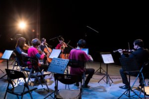 Luego fue el turno de la Orquesta Inicial LMS, ensamble de cuerdas en la que debutaron Alumnos/as de Quinto Básico. Interpretaron para la audiencia que colmaba las butacas del teatro liceano, La Vicuña Roja del cellista, compositor y arreglista chileno, Peje Durán; y el tema principal de la película Jurassic Park, compuesta por John Williams.