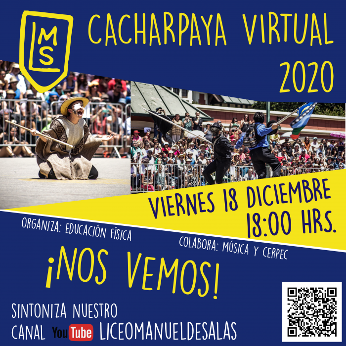 La Asignatura de Educación Física invita a la Comunidad Manuelsalina a ser parte de la Cacharpaya Virtual 2020 y despedir a los y las Estudiantes de la generación de Cuarto Medio 2020, que egresan del Liceo Experimental Manuel de Salas.