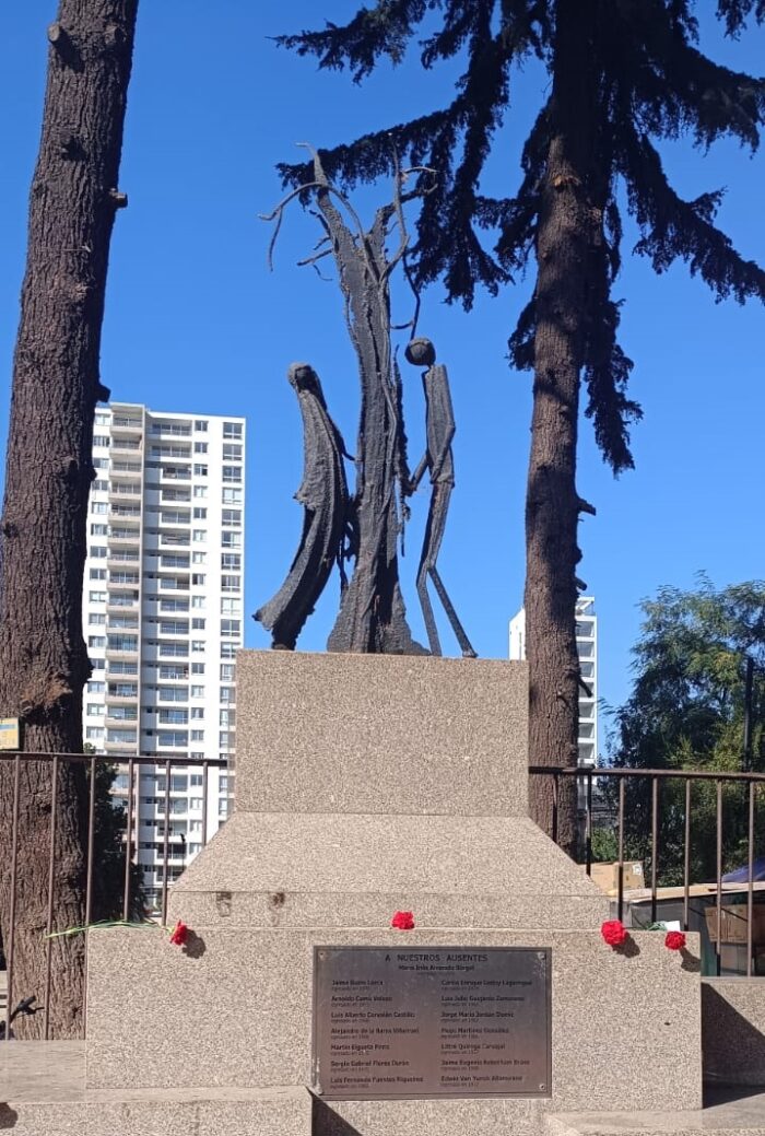 Llegaron de Brasil, Suecia, del norte de Chile y nos encontramos en el Liceo. La Directora Marcela Bornand nos abrió las puertas y nos permitió pasear por los distintos lugares donde habían estado sus salas. Hicimos un recorrido, pasamos por el memorial e identificamos los nombres, en su curso habían tres compañeros asesinados, pero conocían muchos más.